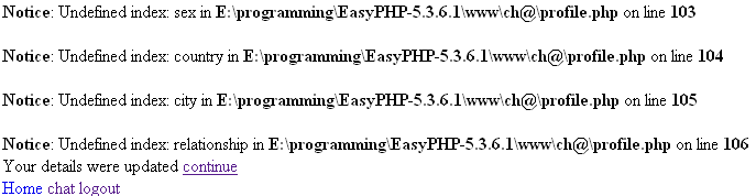 Notice: Undefined index: city in E:\programming\EasyPHP-5.3.6.1\www\ch@\profile.php on line 105