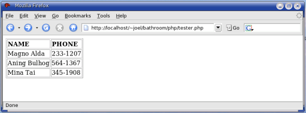 And here's what tester.php prints out when we point our browser to it.