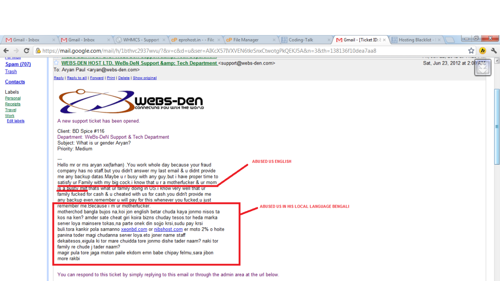 then he replay me: Mr. Bd Spice, do you have proper knowledge of hosting..????