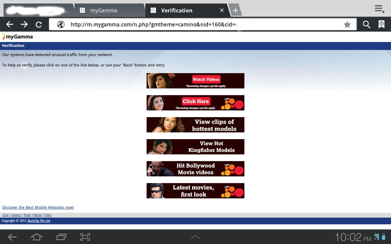 When visitor click on buzzcity's ads Get this error