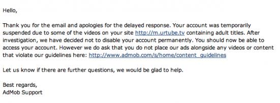 i would say go to other companies, im getting almost the same revenue from inmobi.com and at some sites its even higher than it was with admob plus there is always someone at support who would answer your questions and not like admob you have to wait weeks for reply from their support.