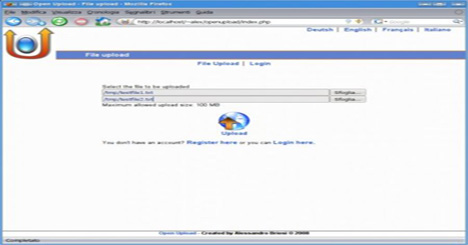 Open Upload is an open source extensible PHP application for fast file upload and download for big (and small) file sharing, like rapidshare and megaupload. Multiple authentication methods, database backends, multilanguage support.