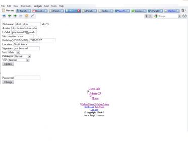 i have this code but when i add it in core.php i get an error in admincp when try changing user info